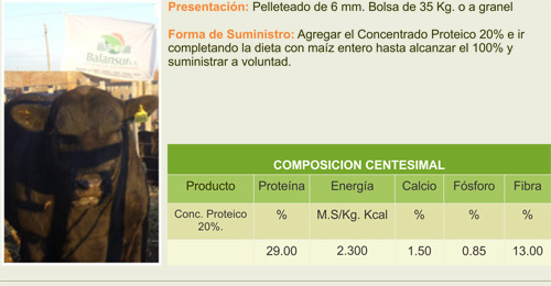 Alimento balanceado Concentrado Proteico 20% formulado para el balanceado en dietas a corral