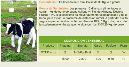 Alimento balanceado para el destete anticipado de animales a partir de los 30 días de vida. Formulado para una pronta adaptación al cambio desde su alimentación a leche al alimento balanceado.