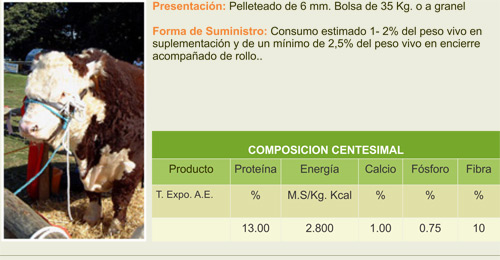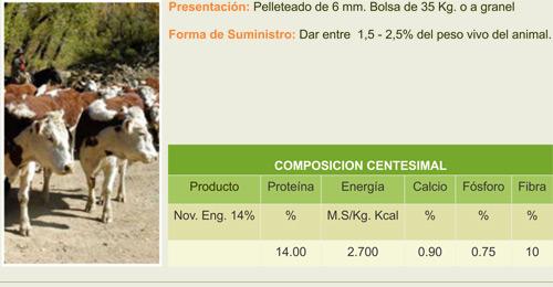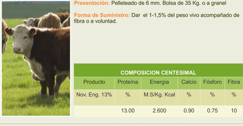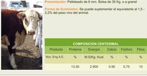 Alimento balanceado destinado a novillos en plan de engorde, favorece una rápida terminación
