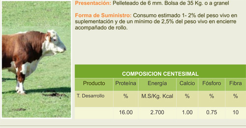 Alimento balanceado utilizado en etapas de crecimiento en bovinos de todas las categorías.
